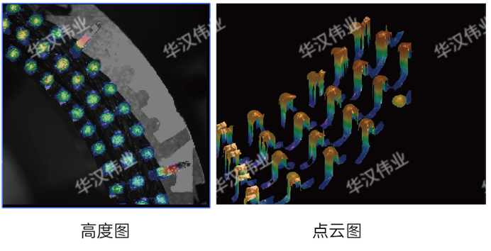 汽车配件PCB板通常包含大量的PIN脚,这些PIN脚数量多、密度大,表面面积微小,且是金属反光材质,华汉伟业引入3D视觉技术和图像处理算法,实现非接触式、高精度的PIN脚高度检测,能够快速准确获取PIN脚的三维坐标信息,保证完美成像,实现漏判率为0,误判率≤1%,有助于确保汽车配件的电气连接性能和机械稳定性。