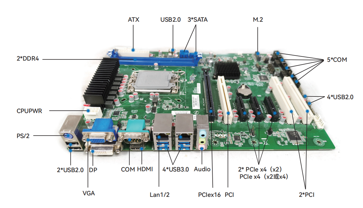 · 2*Intel千兆网口, 4*USB 3.0, 7*USB 2.0, 6*COM