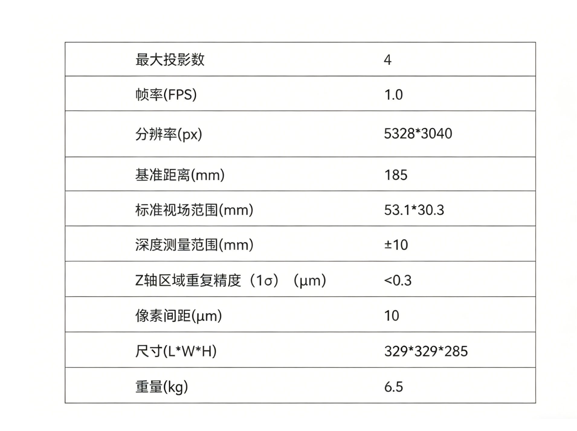 面向尺寸测量、外观检测和3D定位引导等应用场景的高性能结构光3D相机,采用了成熟的投影光学架构设计,结合正交条纹编码投影技术,消除投影盲区影响,显著提高三维重建稳定性和数据完整性;搭载创新的重建算法,能够同时补偿成像镜头和投影镜头的畸变误差,实现微米级的测量精度和亚微米级的重复精度。